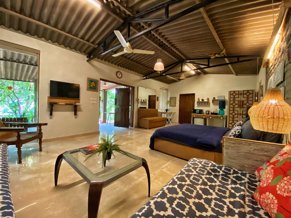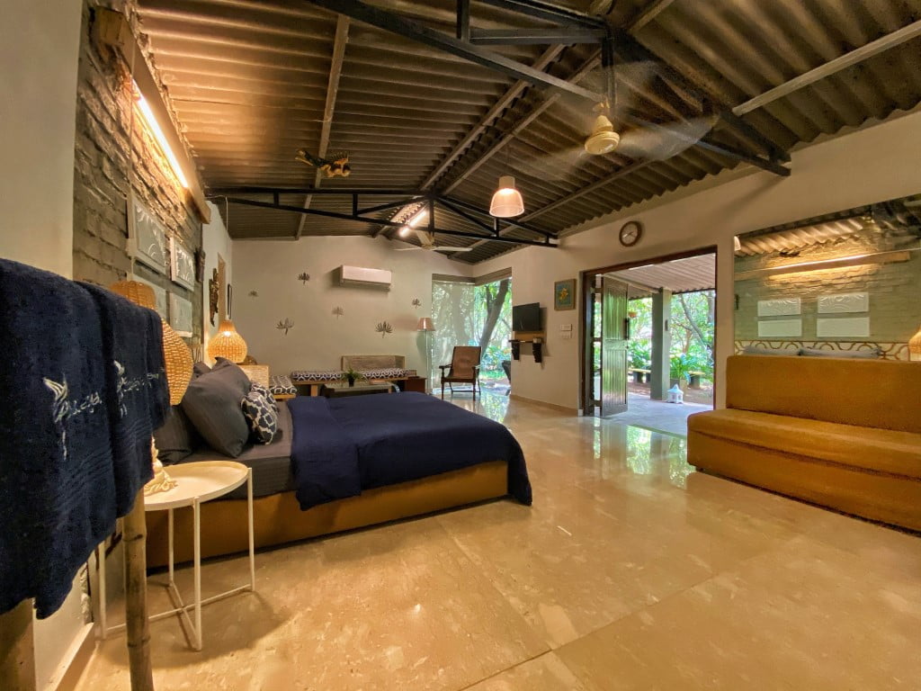 A brief walk away from Villa undertheroof, the Mango Shack blooms with greenery on all fronts. This large en-suite cottage ensures utmost privacy and comfort on a lazy day, with a private jacuzzi, an outdoor patio and all the necessary amenities. Surrounded by Mango trees, its exotic laterite structure and luxury interiors, the Mango Shack makes for an ideal couple’s getaway and a space for friends to truly bond.